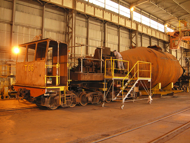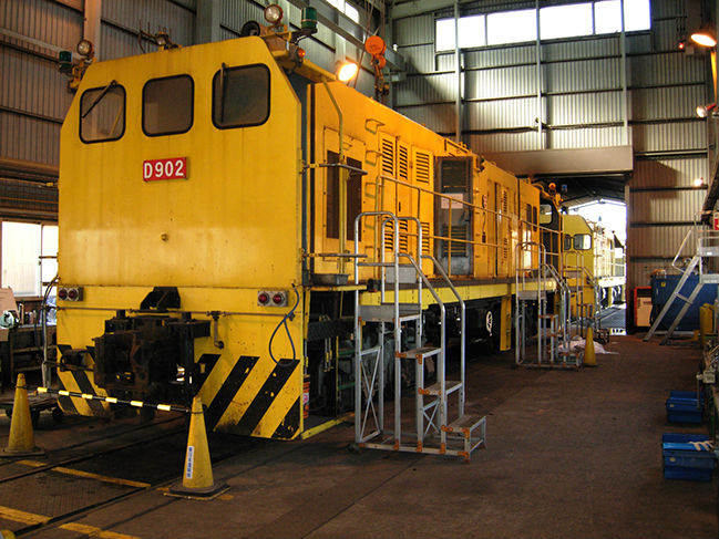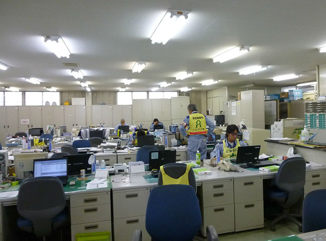 社員が活躍する職場にて取り扱うスケールの大きな車両・設備と、事務所風景を写真で紹介します。