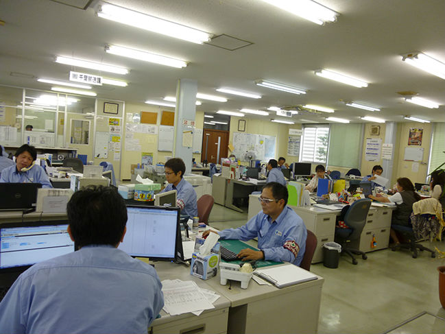 社員が活躍する職場にて取り扱うスケールの大きな車両・設備と、事務所風景を写真で紹介します。